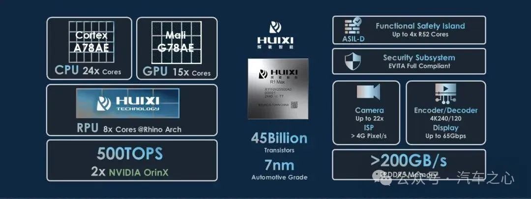 - 7nm 制程,拥有 450 亿个晶体管,符合车规级要求;