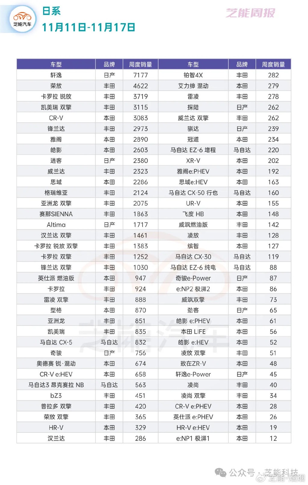 芝能车市周报 | 日系在华第 46 周:丰田、本田、日产和马自达