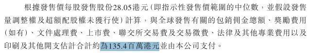然后这个票招股书上按发售价范围的中位数 28.05 港元计算,公开的上市所有开支总额约为 1.35 亿港元,募资额约 19.80 亿港元,占比约 6.75%,开支相比募资额算是比较少了。老板自己都当代言人了。