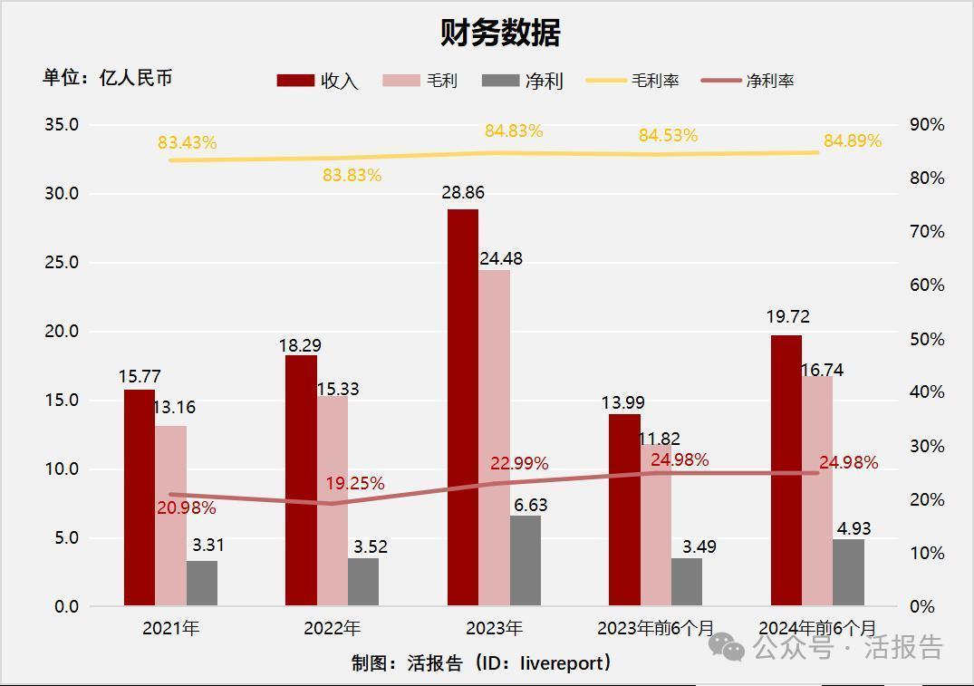 近三年营收、毛利齐增,三年半营收达近 97 亿,2024 年前 6 个月营收 19.72 亿,同比增长 40.97%。