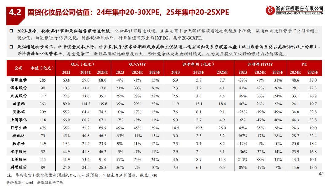根据券商给的投研报告,国货化妆品公司估值:24 年集中 20-30XPE,25 年集中 20-25XPE,这票具体怎么样还是得机构来做出选择,是不是还有估值空间这些也不是我说的算的,并不是说我看好他就能涨,也不是我觉得怎么样他就能怎么样,还是要看国配资金是怎么选择的了,虽然说九源基因的大坑我们是避开了,但从同行的遭遇以及以前一些票舆论导向来看就是多说无益,说对了都是看客自己牛逼,说错了就是被一堆网暴。公开的文章里受众面广只能点到为止,该讲的也都讲完了,决不能刻意引导买卖,毕竟还是要合法合规。