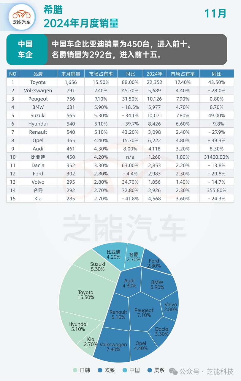 欧洲车市 | 11 月希腊汽车市场,比亚迪闯入前十