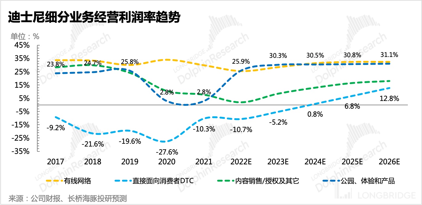 在获利水平上,流媒体业务如管理层期望,在 2024 年达到盈亏平衡,其他传统业务也会在近两年尽快修复至疫情前水平,其中主题公园业务在产品组合优化下,利润率则较以前更优。