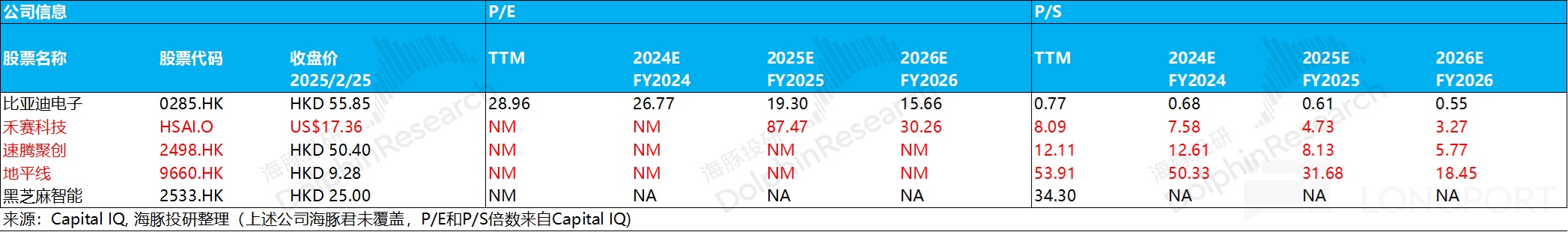 ② 但海豚君仍看好智驾技术仍处于头部且持续领先的车企,有望享受本轮智驾估值切换: