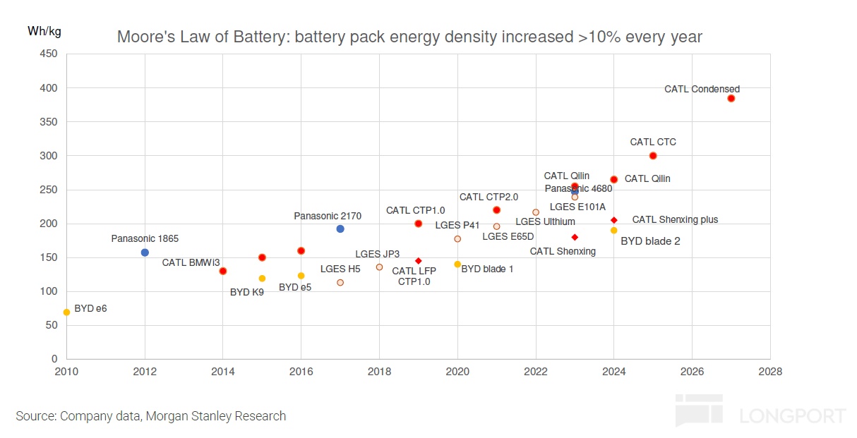 但在 2025 年销量上目前仍然还存在潜在预期差的点在于,海豚君认为比亚迪可能类比 2024 年推出插混新技术 DM 5.0, 2025 年或将推出下一代纯电新平台 E4.0, 由比亚迪新一代刀片电池能量密度大幅提升所支撑,预计 E4.0 平台的纯电车型的续航和充电速率会再一次大幅提高,纯电车型换代预计也可能会带来较大的替换增量。