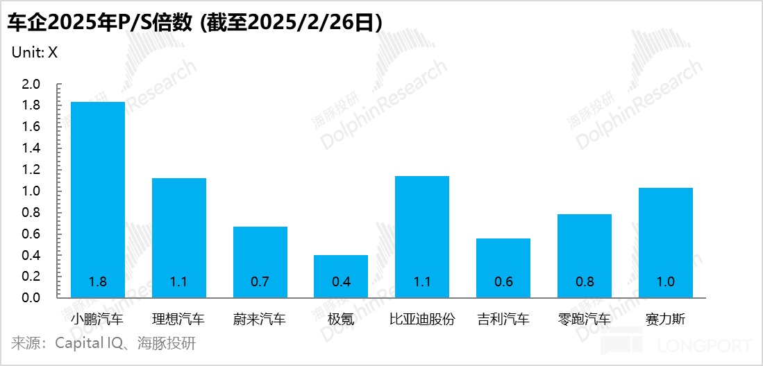 小鹏在 2025 年智驾元年中确定性相对较强,但小鹏目前股价对应的 2025 年 P/S 倍数已经接近 1.8-1.9 倍,已经打入了较高的智驾预期和销量预期,建议等股价回撤之后的机会。