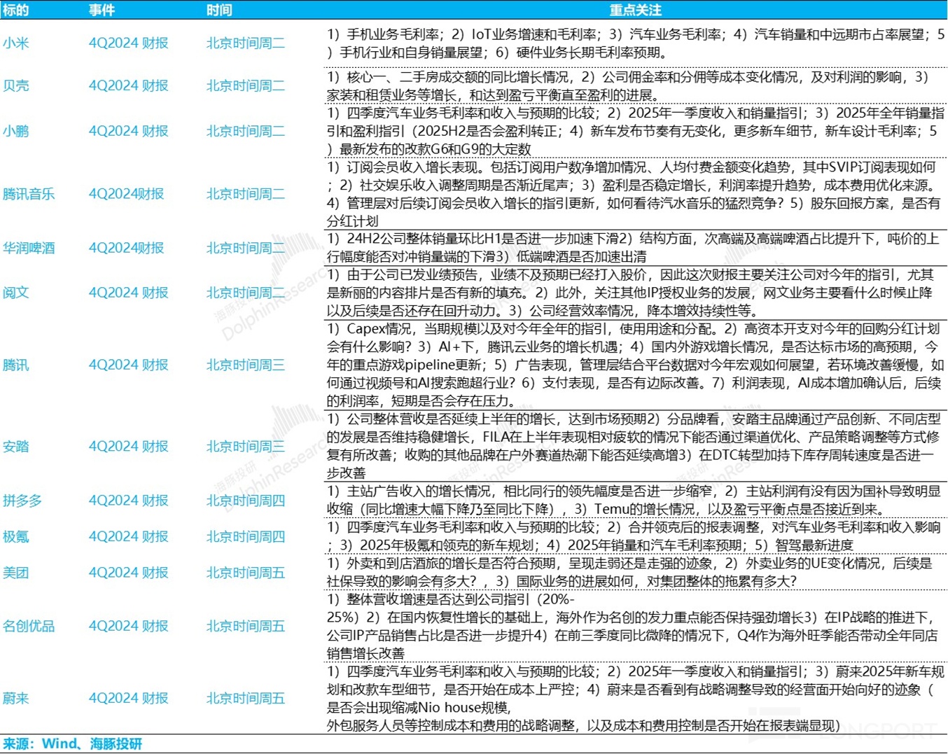 个股具体重点关注地方,海豚君总结如下: