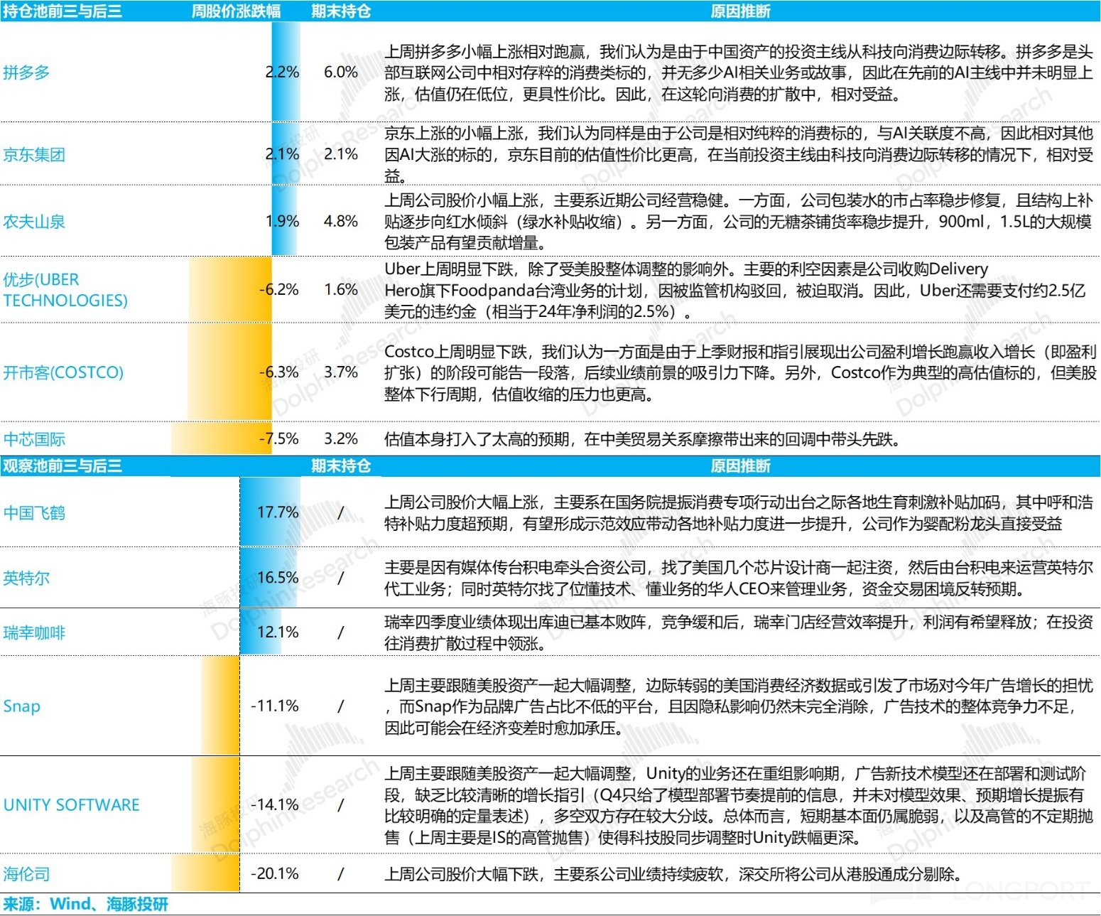 近期海豚投研组合周报的文章请参考: