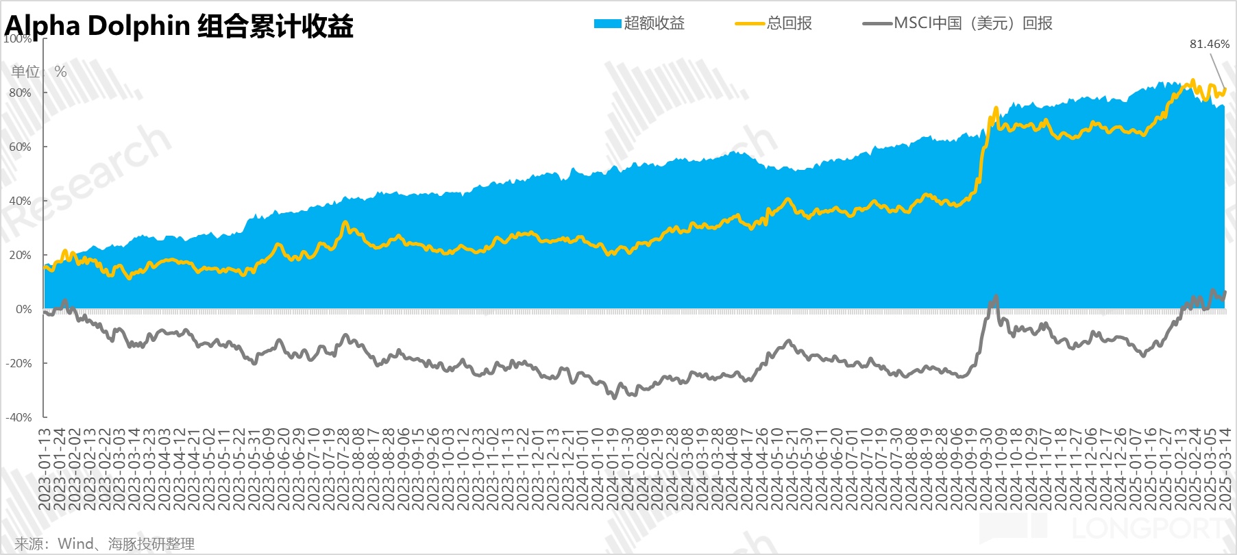 自组合开始测试(2022 年 3 月 25 日)到上周末,组合绝对收益是 81.5%,与 MSCI 中国相比的超额收益是 75%。从资产净值角度来看,海豚君初始虚拟资产 1 亿美金,截至上周末超过了 1.84 亿美金。