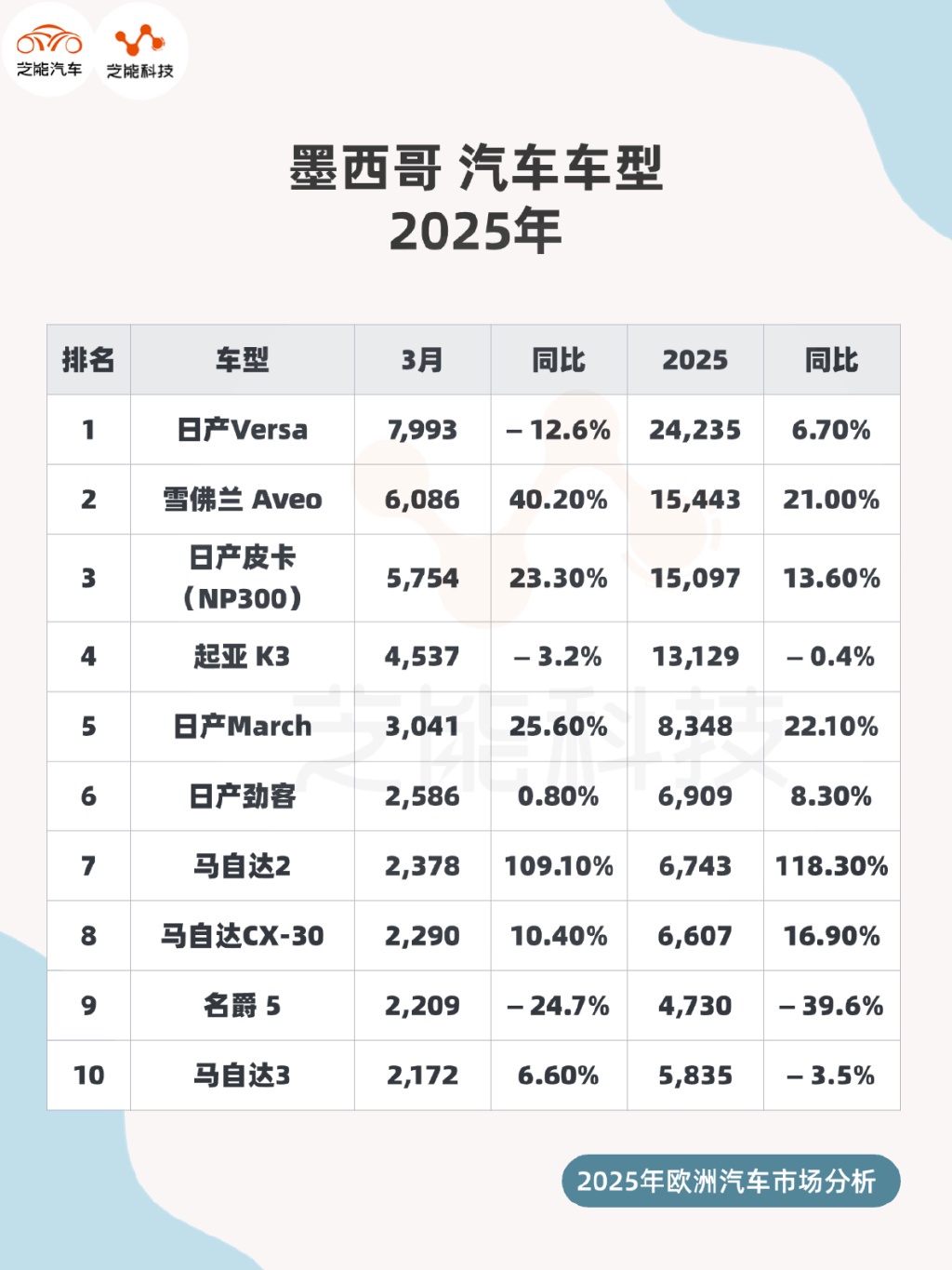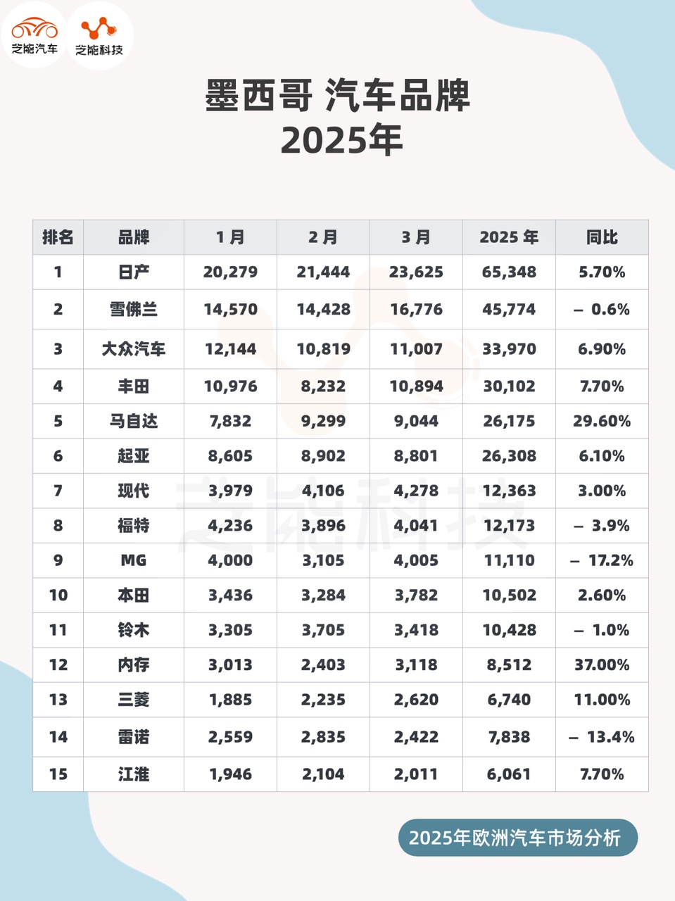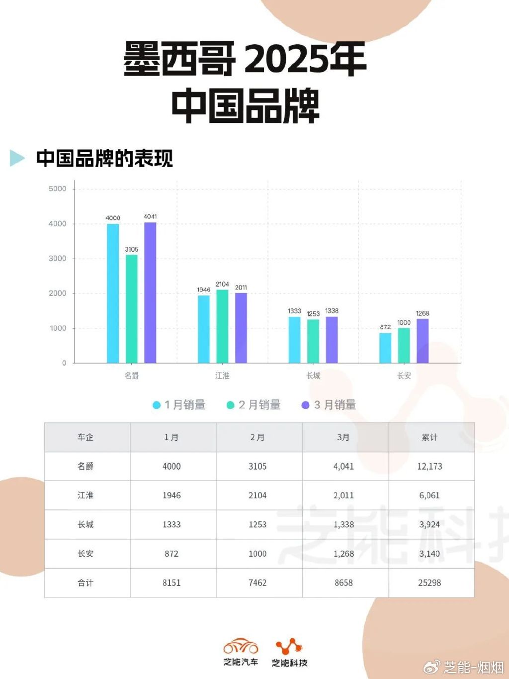 美洲车市 | 墨西哥 2025 年 3 月:中国品牌增速明显