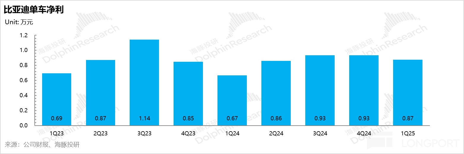 3. 单车净利端表现不错,略超预期中枢:对于投资者同样关注的单车净利方面,由于比亚迪之前发过一季度业绩预告,所以市场对本次不错的单车净利水平是有预期的。