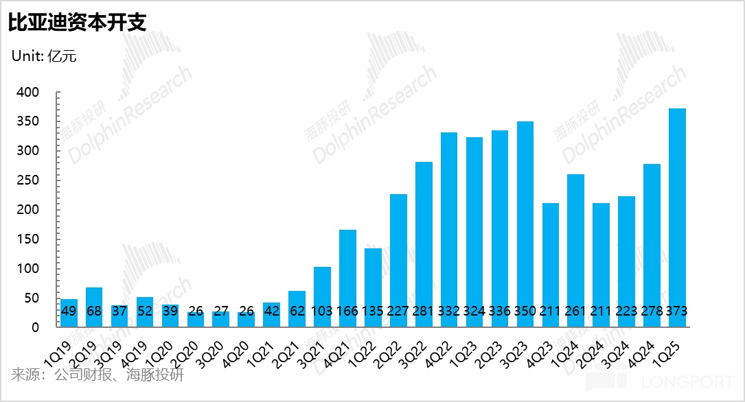 2. 出海一季度开始放量,比亚迪资本开支继续增加,预计为海外市场准备产能: