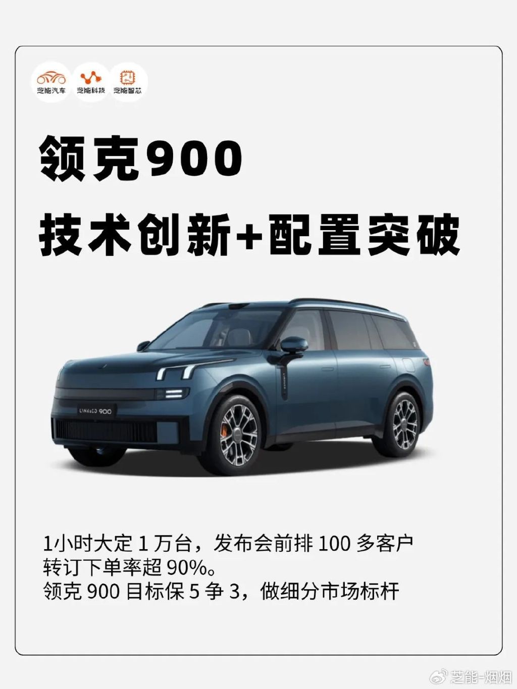 领克 900 这台车是非常有特点的,积累 4 万台小订,首小时大定突破 1 万台。