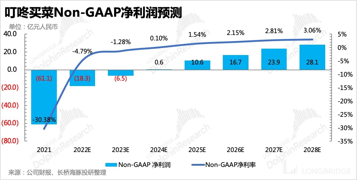 按照上面的思路,海豚君对叮咚买菜的未来经营假设做了中性预期下的调整: