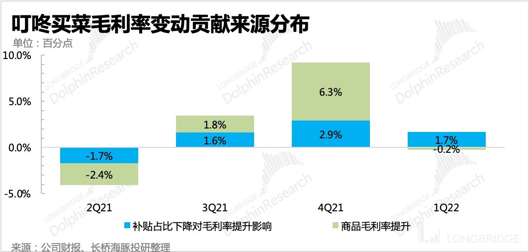 ① 引入更多高毛利率商品 + 补贴下降之后,整体毛利率的提升。