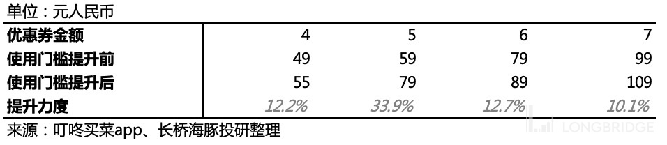 除此之外,优惠券使用门槛提高也是公司去年下半年做的一个较大调整之一,会员用户能够明显感知。