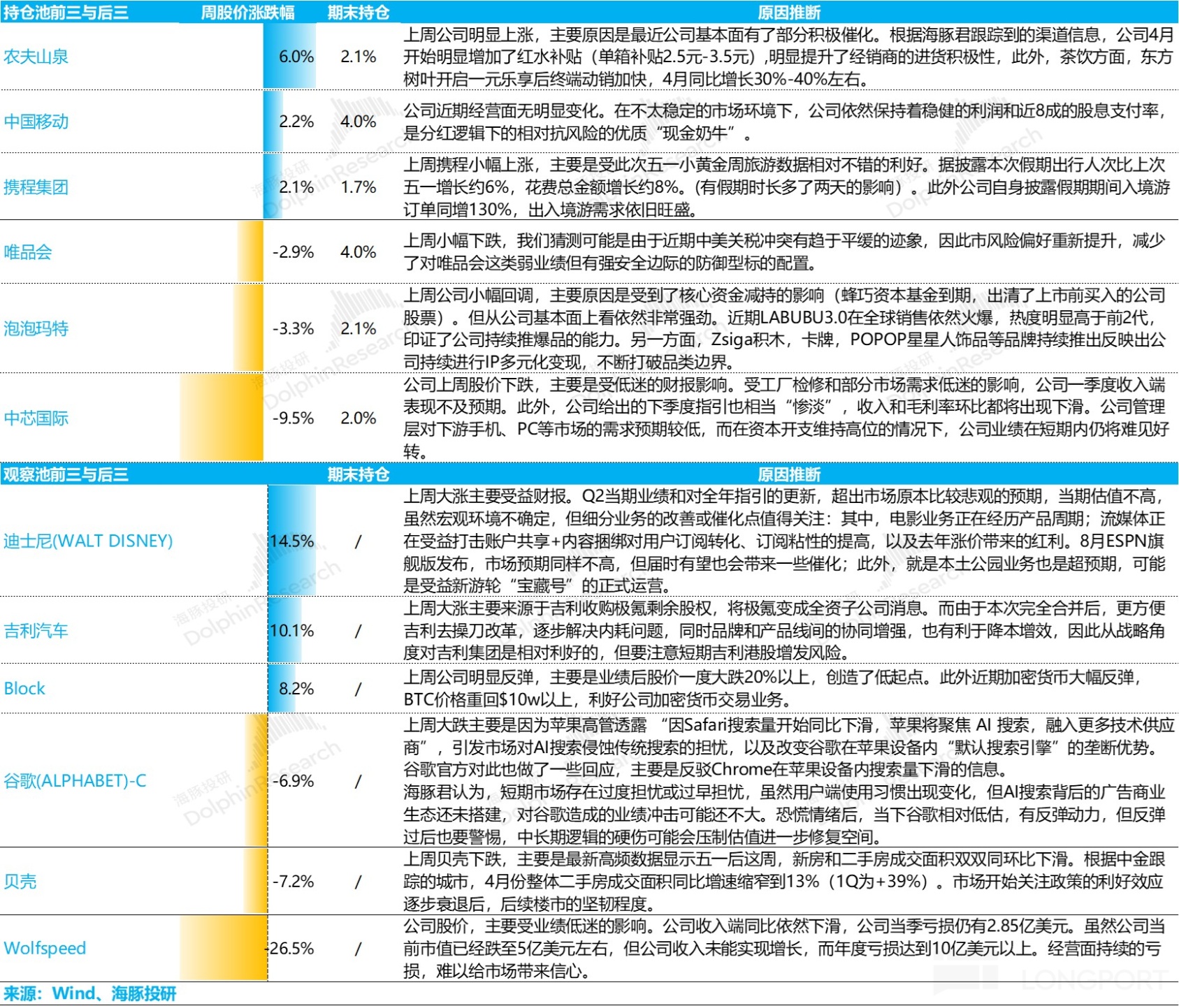 Alpha Dolphin 虚拟组合上周无调仓,但美股财报季已过,短期,海豚投研会基于财报和宏观的趋势逐步调入一些个股。