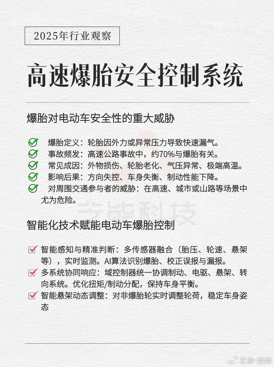 在此背景下,爆胎不再仅是轮胎本身的问题,而是一个涉及整车动态响应、驱动系统调节、底盘稳定控制等多模块协同的复杂系统性问题。