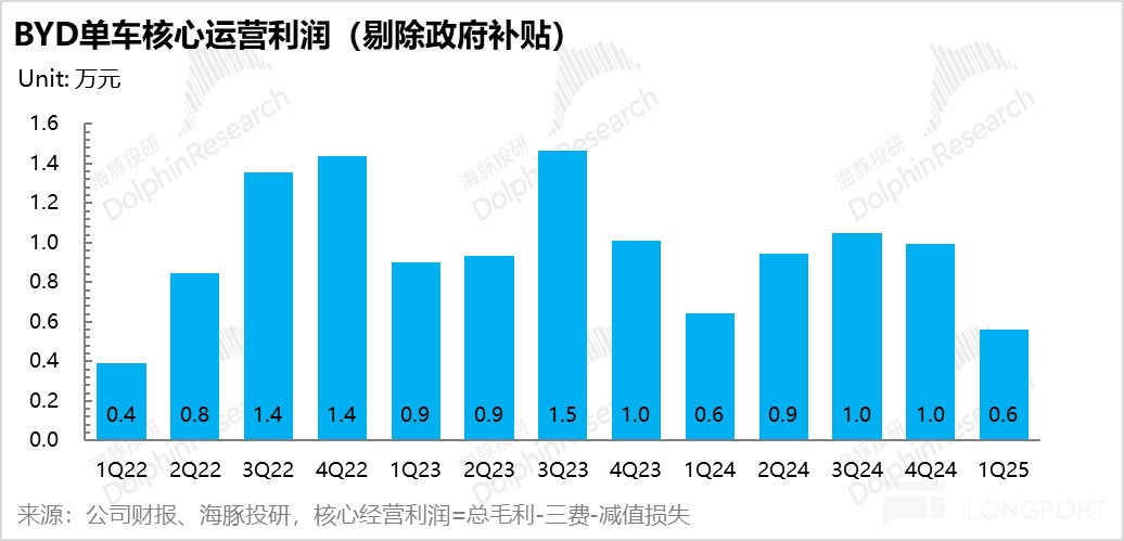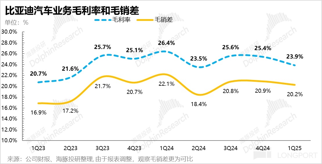 但海豚君还是认为,比亚迪在打价格战方面目前仍具备绝对性的碾压优势,一季度在智驾版车型尚未开始降价(比原先的老款已降价后的车型便宜 1-2 万元的情况下),汽车业务实际毛利率仍然能做到 24%,单车净利做到了将近 0.9 万元,详细见海豚君对于比亚迪一季度点评《比亚迪: 车王还是车王!但能否再继续狂奔?》。