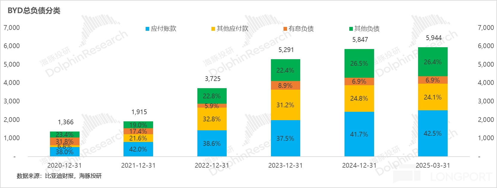 海豚君结合往年的年报批注,认为很可能以应付设备款(对设备供应商的无息负债)为主,来支撑快速的产能扩张计划,也正好对应了 2021 年及之后比亚迪产能处于快速扩张期。