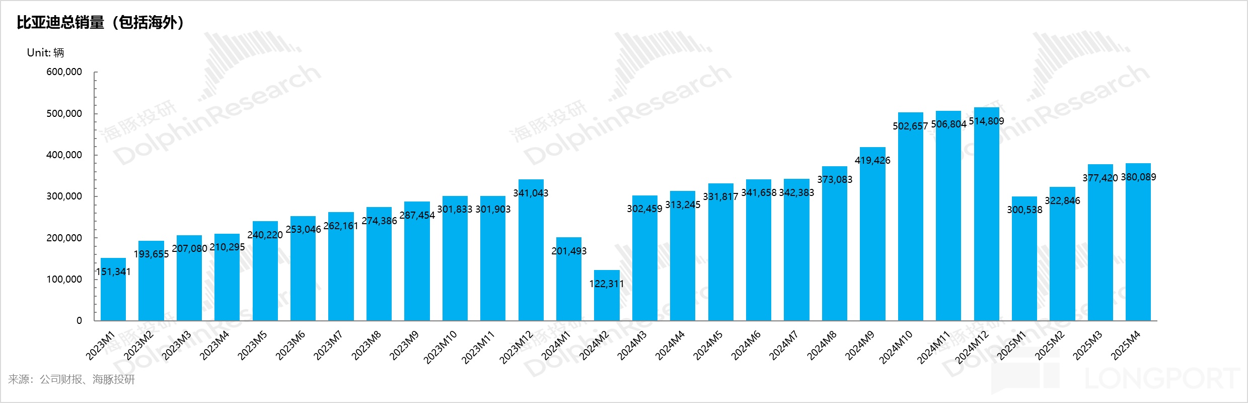 所以整体来看,比亚迪仍具备很强的继续打价格战的实力,尤其在垂直一体化模式下构建的毛利率的绝对优势上,还是通过海外高增来反哺国内,而这次智驾版车型的降价基本也是满足刚需价格带对于性价比的持续追求,所以海豚君认为比亚迪短期上是没有太大问题的。