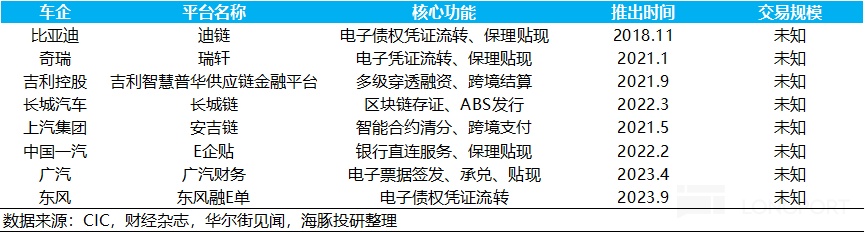 根据 2024 年行业数据显示,2023-2024 年中国汽车行业前十大车企(如比亚迪、吉利、长城、上汽、奇瑞、广汽、东风、长安、一汽、上汽通用等),可以发现其中至少有 8 家已公开运营自有供应链金融平台。