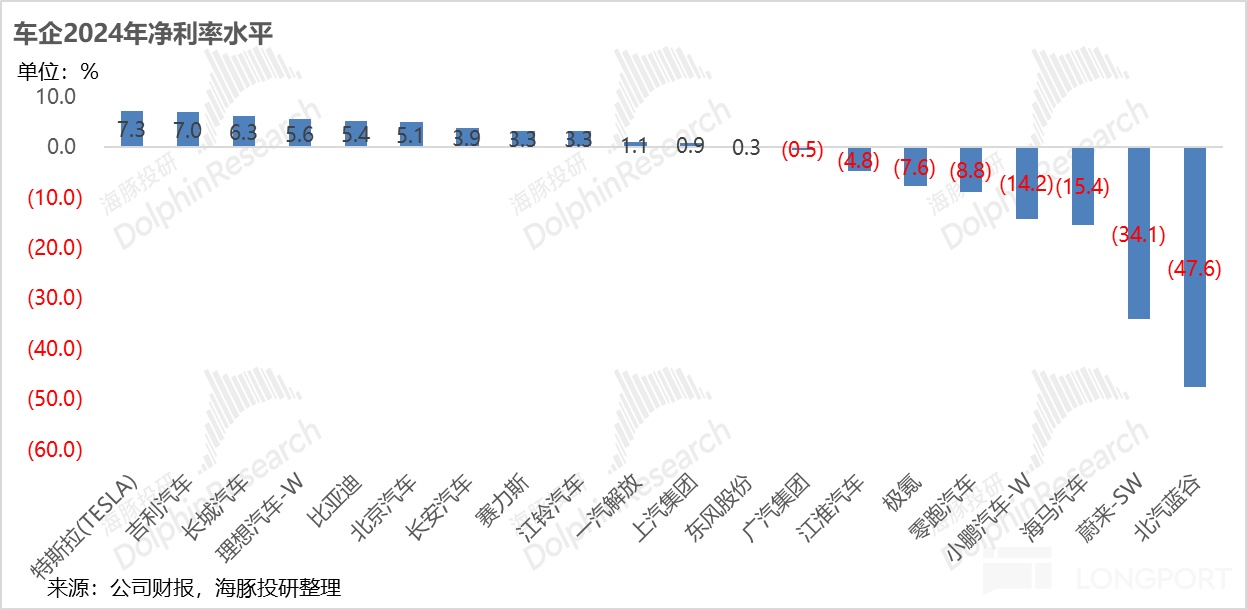 而车企的竞争也会更转向内功型玩家(依赖自身盈利):