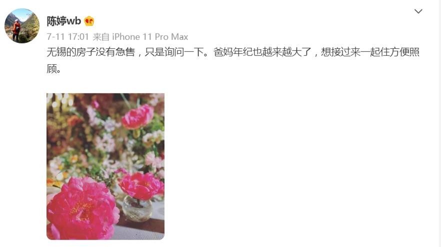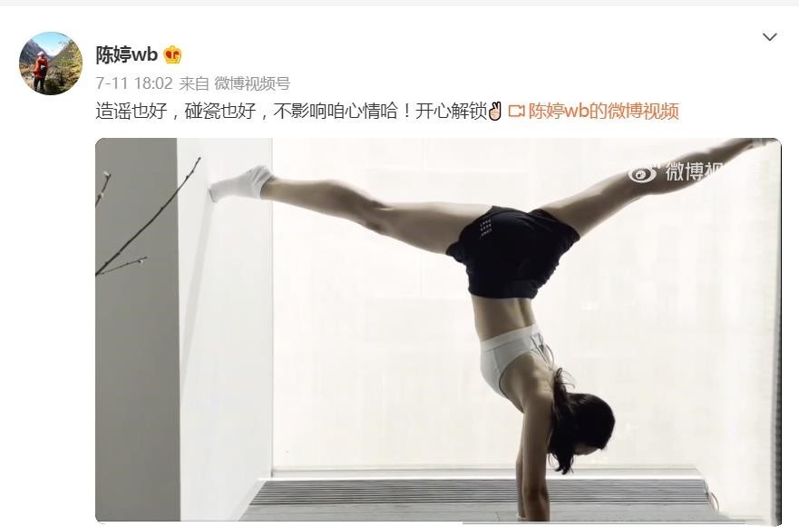 7 月 11 日下午时分,张艺媒现任妻子陈婷连发 2 条微博 “辟谣”,称 “无锡的房子没有急售,只是询问一下,爸妈年纪大了考虑接过来一起住方便”,并且还发了一段健身的自拍视频,配上了 “造谣也好,碰瓷也罢,不影响咱心情哈!开心解锁” 文案,看得出来,陈婷心态还是非常平稳的。