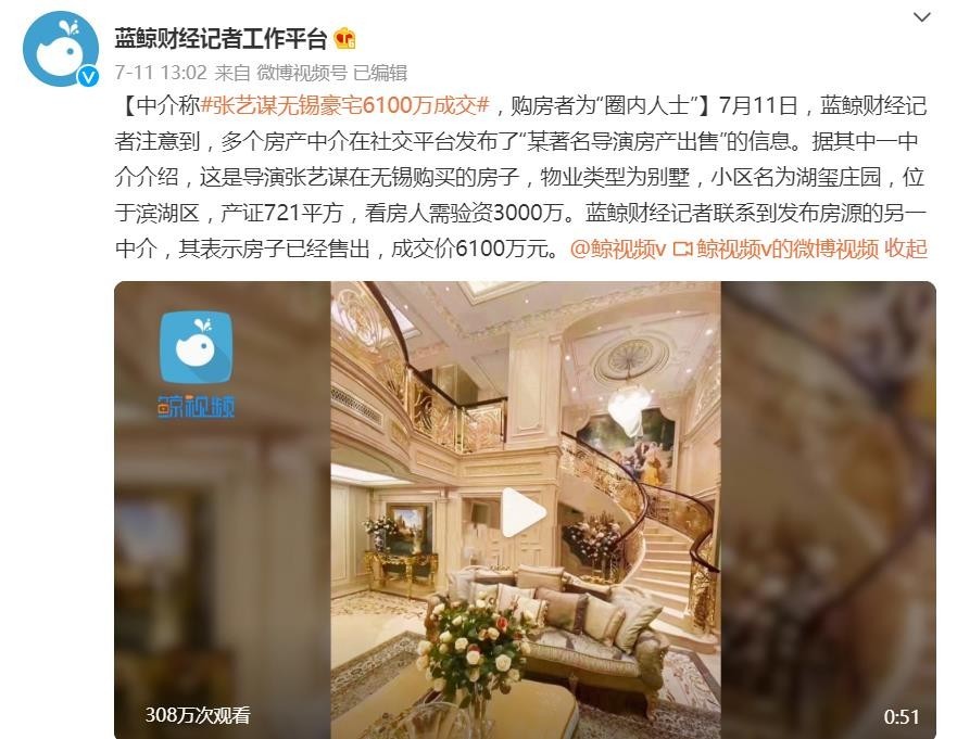 张艺谋无锡豪宅 6100 万售出?业内:若高于市价千万成交,图的可能不是房子——时代周报