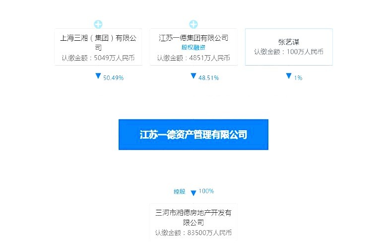 张艺谋认缴 100 万人民币、持股 1% 的一德资产,则是一家专注 LOFT、精装住宅、商业等多元化业态的公司,并且与张艺谋还有更深度的合作关系,后者一度成为张艺谋 “印象” 系列实景演出的出品公司。