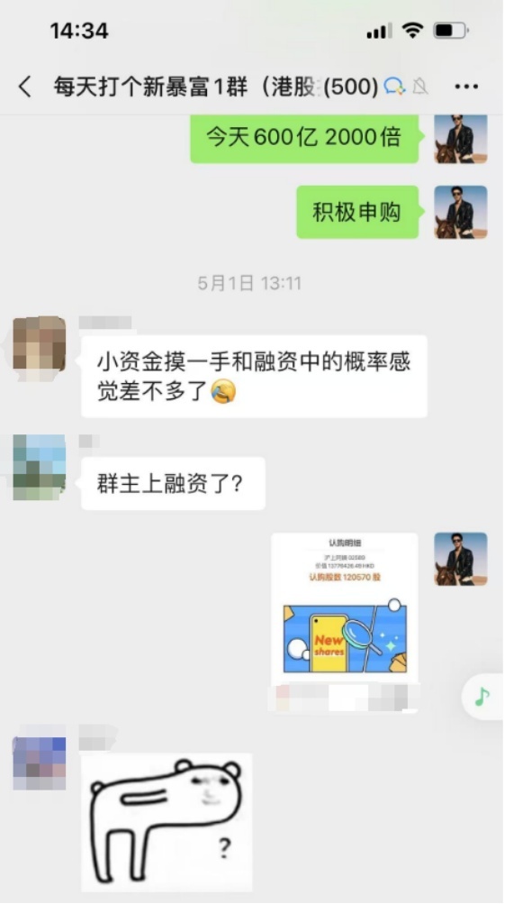 沪上阿姨,我不怎么看好,但是这个孖展太高了,已到了一力破万法的程度,所以我在申购结束前一天看到这几千倍的孖展,决定吸取踏空草姬的教训,直接上顶头锤。