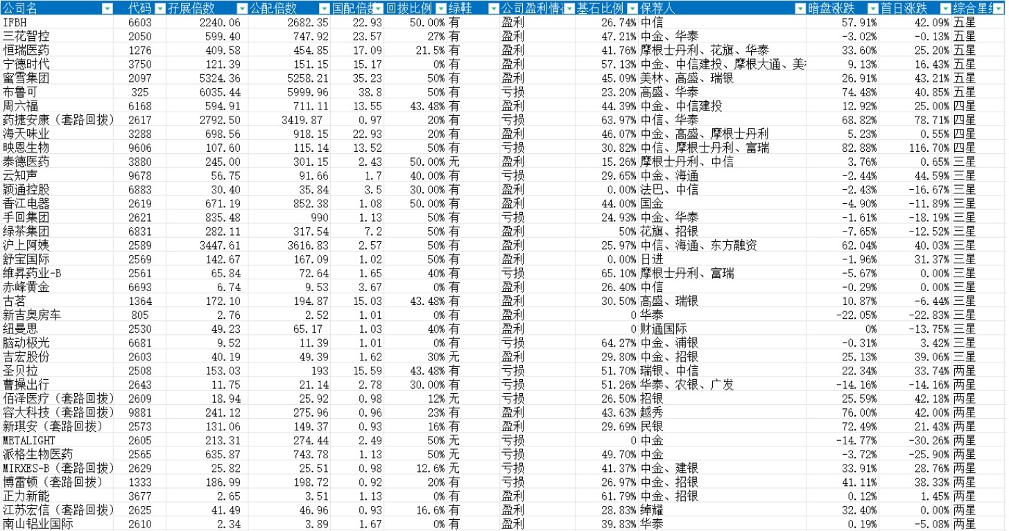 文末总结:今年上半年,4-5 星股胜率 90%,暗盘平均涨幅 36.8%,首日平均涨幅 38.9%。