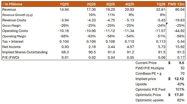 • 短期风险包括股份稀释和加密市场波动,但稳健的财务健康状况和行业定位使这些担忧相形见绌;建议买入,目标价为 17.30 美元。