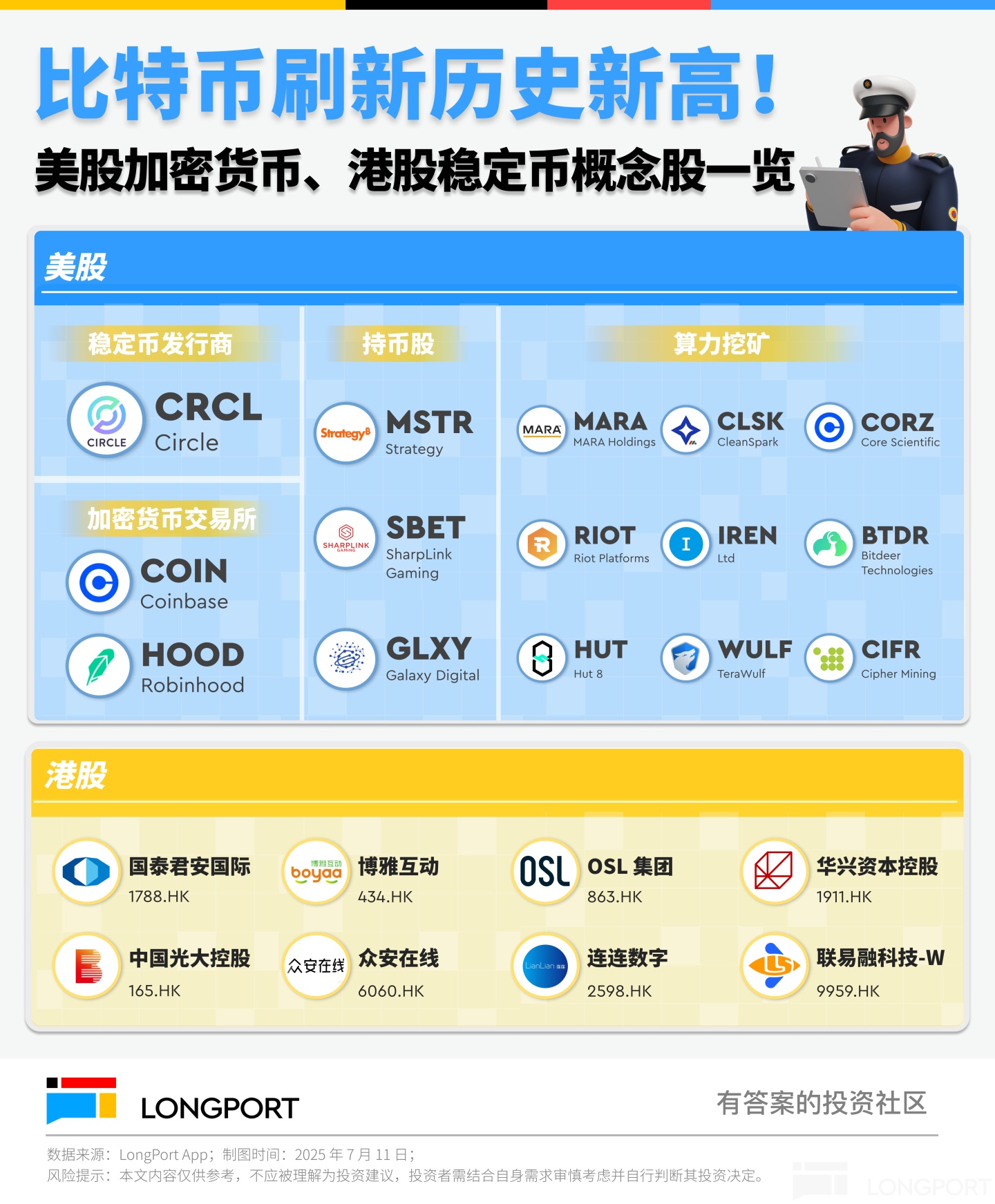 比特币又创神话了! 7 月 9 日,它首度冲破 11.2 万美元历史大关,第二天更是直冲 11.7 万美元,不断刷新天花板。这场加密狂欢迅速烧到股市——美股加密概念股和港股稳定币标的集体大涨,数字资产与传统金融的"联姻"正在加速落地。
