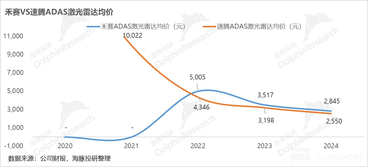 禾赛在 ADAS 激光雷达的技术路线上一直 all in VCSEL+ 半固态转镜方案,虽然初期在成本上并没有速腾使用的 EEL+ 半固态 MEMS 方案有优势(当时更成熟的方案,降本路径更清晰,著需要精简 EEL 激光器数量),所以速腾也一直采用低价战略抢占 ADAS 的市场份额(速腾的毛利率和 ADAS 激光雷达的价格相比禾赛更低)。