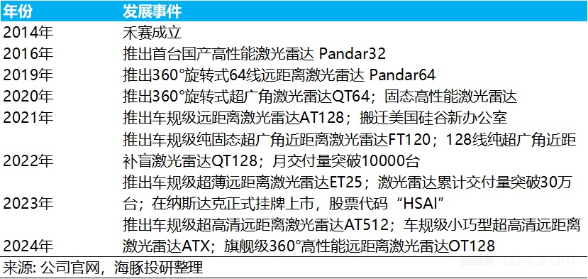 2)2016 年开始正式切换到 “激光雷达” 赛道:而后,禾赛早在 2016 年看到了智能驾驶与人形机器人等更为广阔的赛道,而这两个赛道都对需要激光雷达作为 “人眼” 实现外部感知(虽然目前这两个赛道对以摄像头为主的纯视觉方案和激光雷达方案仍然存在分歧)。
