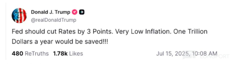 昨天晚上,美国 6 月 CPI 环比涨幅不及预期,而且已经是连续第五个月低于市场预期值了。这也就意味着,自从 4 月份的关税以来,市场对通胀的担忧,似乎真的是有那么一点 “杞人忧天” 了。而这也正中川普同志的下怀,他认为自己又一次赢了一次,并且立马在 Truth Social 上喊话美联储应将利率下调 300 个基点!!!
