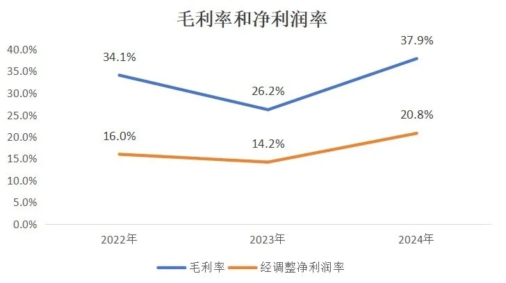 2022 至 2024 年毛利率及利润率: