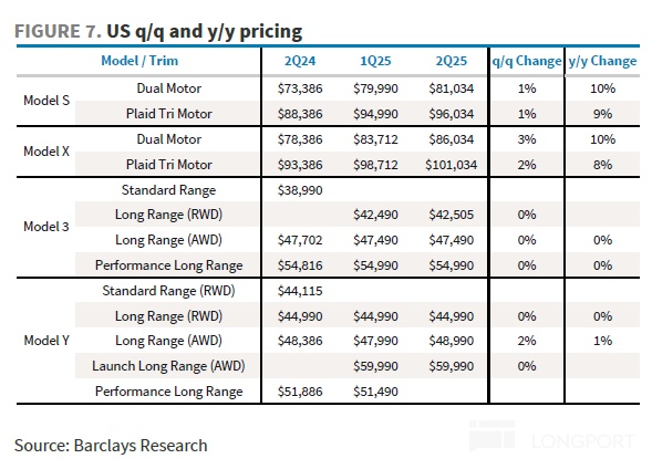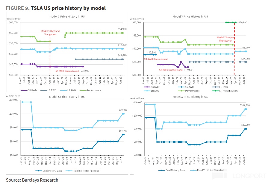 ① 对于现有车型的价格调整:Model Y Juniper上市的起售价高于旧版Model Y车型,对卖车单价有正面影响