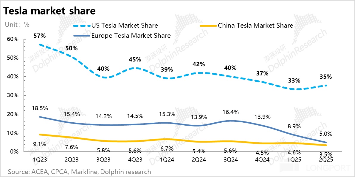 ③ 欧洲市场:欧洲市场特斯拉的表现也相对一般,之前一季度受到了马斯克的政治活动引发的品牌价值损伤,这对欧洲影响尤为显著,因为企业车队买家占欧洲销量比例较高。