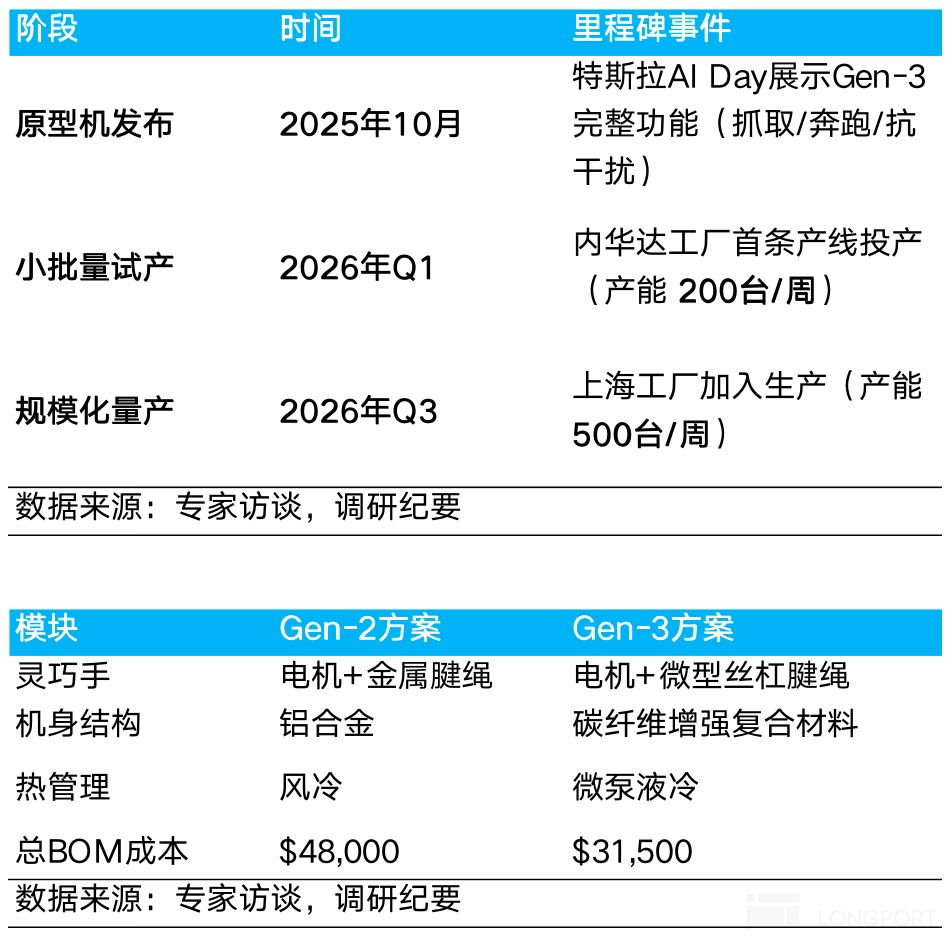 ② Optimus业务上:预计2025年年末及2026年年初Gen 3首次开始量产