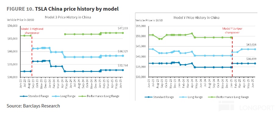 b. 中国:在中国,Model Y Juniper的起售价也相比老款Model Y上涨了3%左右。