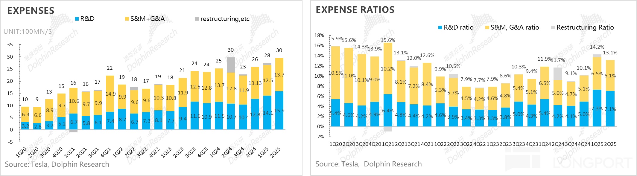 特斯拉本季度研发开支和销售费用又在继续加大,研发费用15.9亿,高于市场预期13.4亿,仍然由于AI智能化投入以及新车系研发投入加大,而销售与行政费用本季度13.7亿,超出预期12.7亿,主要由于Model Y Juniper上市的营销投入。