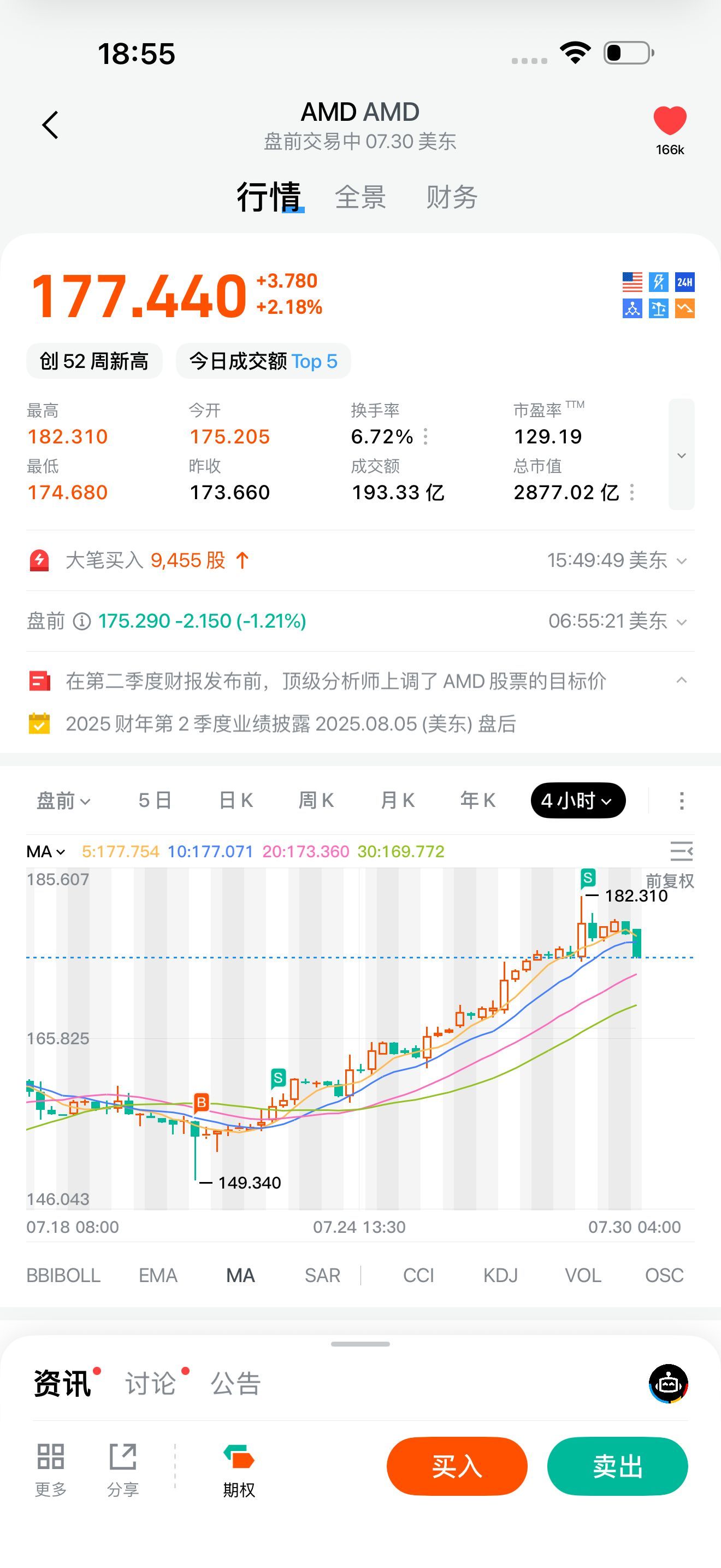 AMD 是一个非常标准的上升趋势票,原计划 8.5 号财报前我应该大减仓然后观望,结果任性赌了一把被财报后砸盘套住,但是这也给了一个绝佳的加仓机会不是吗