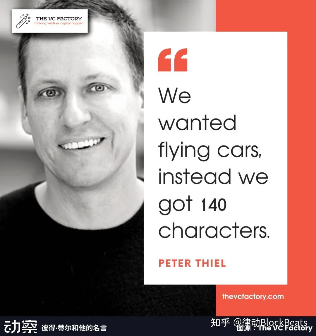 彼得·蒂尔曾说过一句名言:「We wanted flying cars, instead we got 140 characters.」