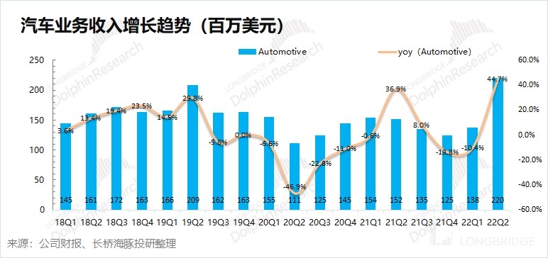 汽车业务是公司本季度超预期增长的一项,创季度历史新高。随着自动驾驶等应用的持续渗透,汽车业务有望给公司带来新的成长性。
