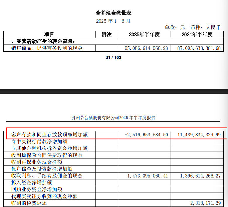 看起来很吓人,但实际影响没那么大,茅台自己的解释是:“经营活动产生的现金流量净额减少主要是本期公司控股子公司贵州茅台集团财务有限公司吸收集团公司成员单位存款减少及存放中央银行法定准备金和不可提前支取的同业存款增加。”