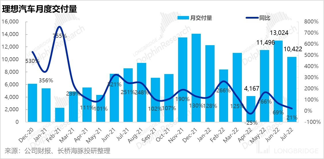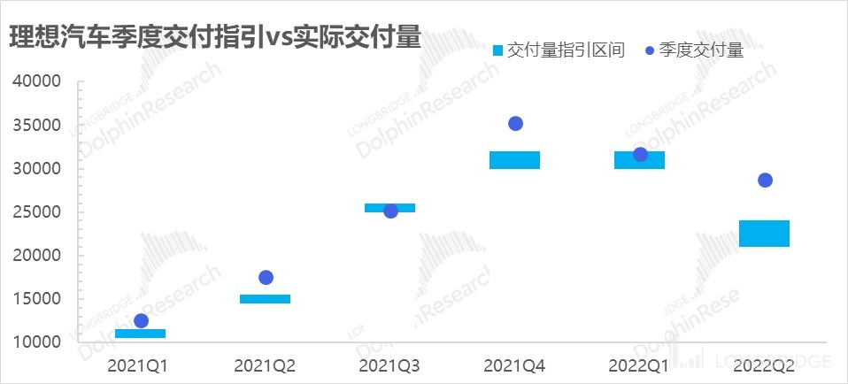 理想出二季度的销量指引的还是,还是上海封控时期,指引给的比较保守,实际走出疫情后,生产加班加点、大干快上,实际交付远超公司原本的指引。