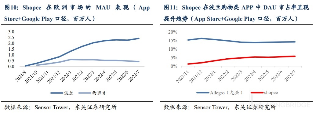 而在欧洲市场中,Shopee 目前在波兰的表现最优(海豚君先前就认为,Shopee 在经济相对不发达的市场更易成功),并逐步缩小与波兰当地电商龙头间的差距。