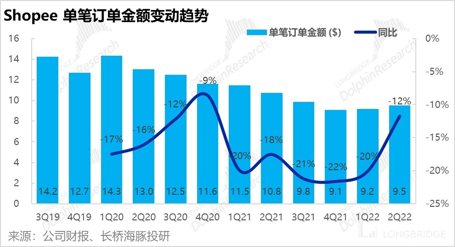 从单均利润角度:本季 Shopee 单均(剔除股权激励、商誉减值)调整后 EBITDA 亏损为 0.33 美元,而上季度为 0.4 美元。